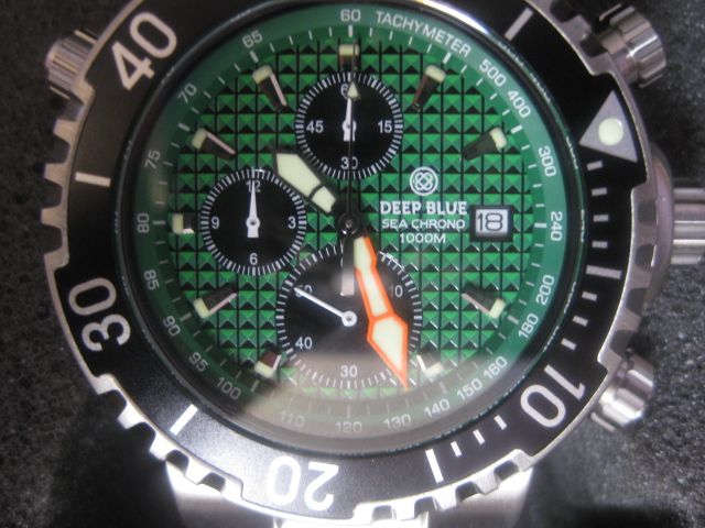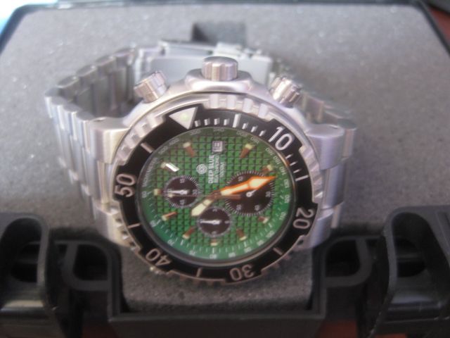 Im Selling my Deep Blue Sea Chrono 3,330 feet Green Dial as Ive only worn it once as I usually reach for the other Deep Blues I own which are much bigger.