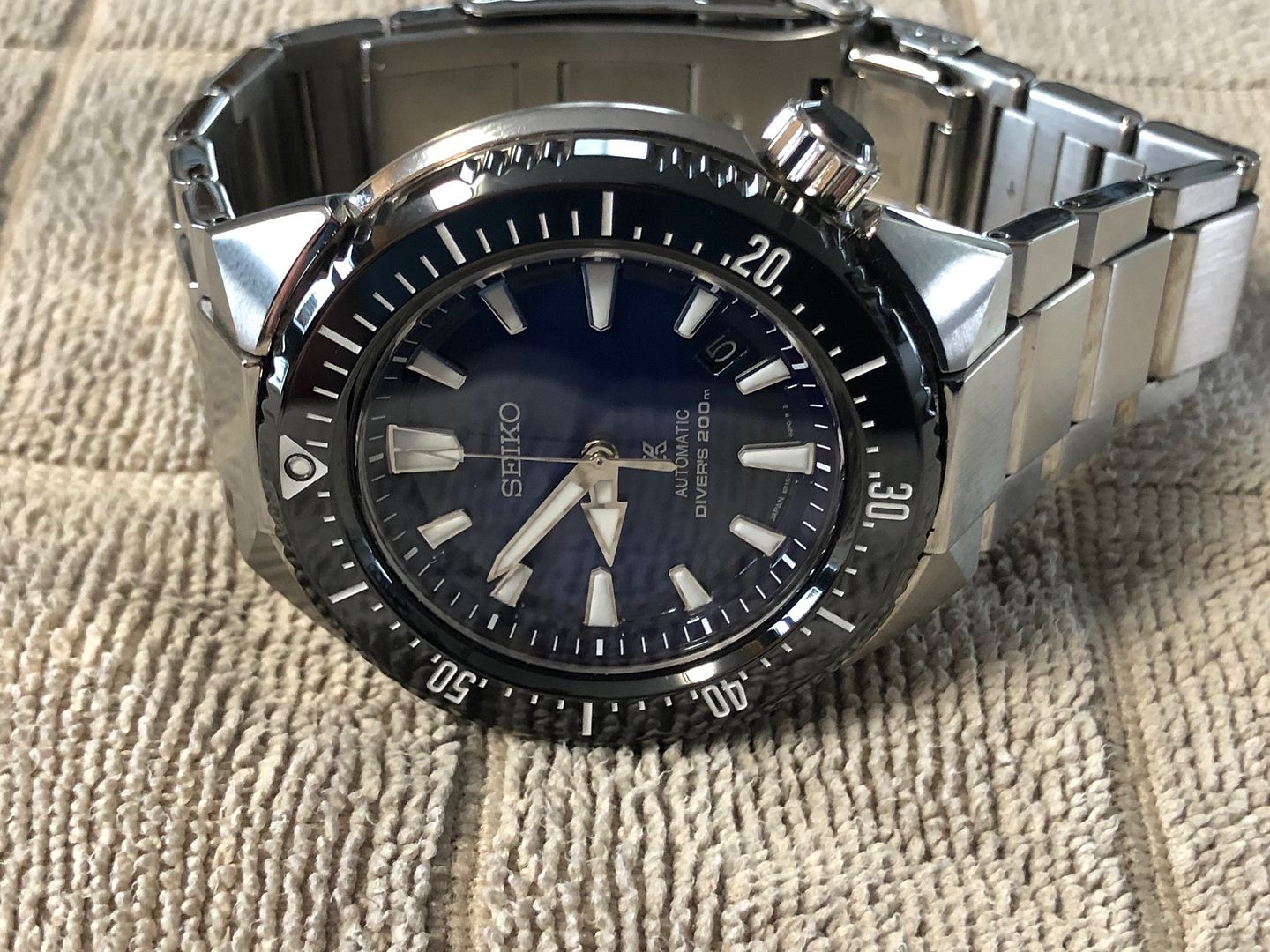 I have for sale my Seiko SBDC047 Transocean Prospex Diver. The watch comes complete, with outer box, box, booklets and cards, tags and watch. This is a gorgeous watch with a beautiful blue dial covered by a Sapphire crystal, and monobloc ceramic bezel. The bracelet is sized for an 8" wrist with 2 extra links and milled clasp.