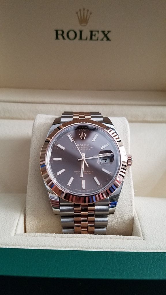 Selling my beautiful and elegant 2016 DateJust 41 fluted Chocolate two tone Everose on Jubilee. New 3235 movement with 70 hours power reserve. Still under warranty until 2021. Retail $14,900 plus taxes. I purchased this piece from watchfinder August 2018. The original owner purchased it from Damiani Jewellers in 2016. Hardly worn as it was only for special formal events. Comes with box and papers. $11,900 firm cash and local GTA only. No trades and all lowball offer will be ignored.