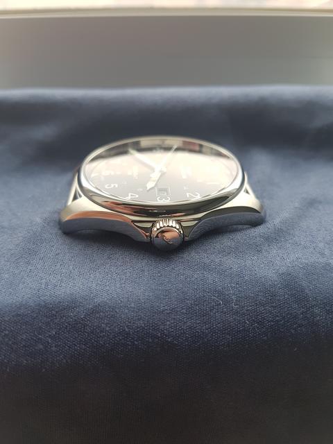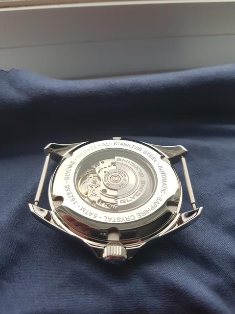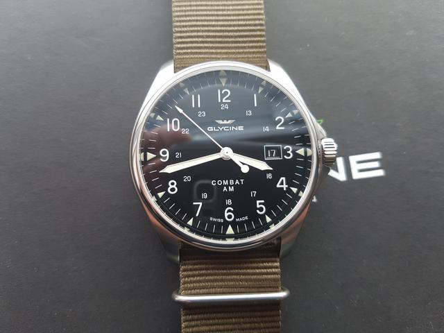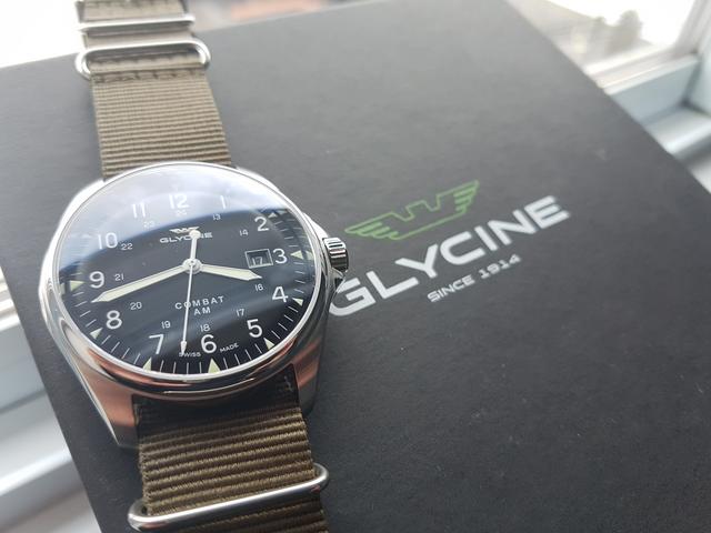 This Glycine is the larger 43mm size. I have had it about a year but have worn it every once in a while. The dial has a vintage style reminiscent of an IWC Mark XI in my eyes.