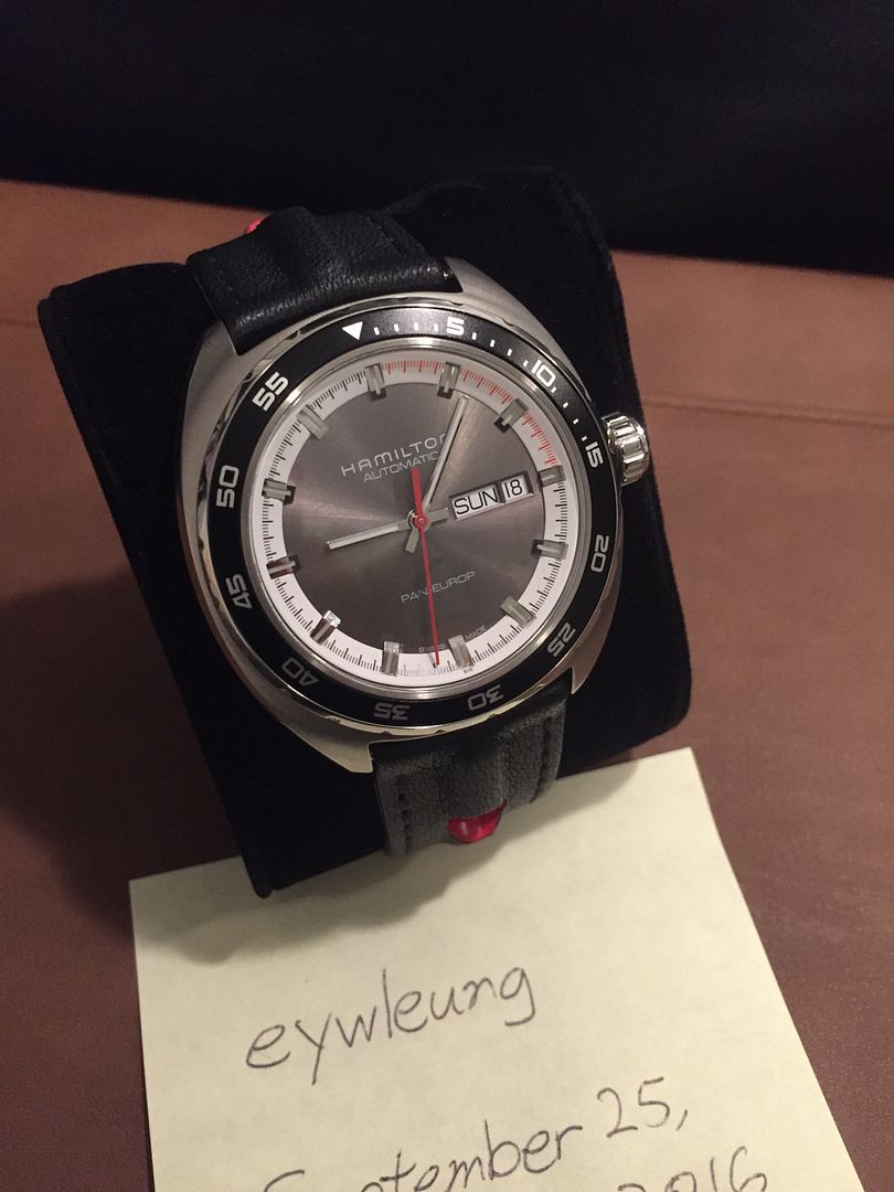 I am selling my Hamilton Pan Europ. I'd rate this watch 98% as I really cannot find any marks on the case, bezel, crystal or clasp. I keeps REALLY GOOD TIME. I consistently get +/- 5s out of this watch. Very long power reserve due to the lower bit rate.