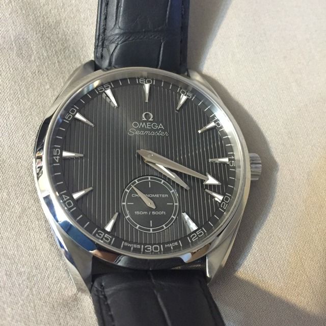 For sale is the rare and discontinued Omega Aqua Terra XXL Small seconds 231.13.49.10.06.001. Retail for this watch is $5,400 US if you can find it. Watch is Mint, no scratches or dings. This watch has the classy 2211 Manual wind movement which makes it perfect as addition to your collection. Case back is crystal so you can admire the movement. Red dot still in tact.