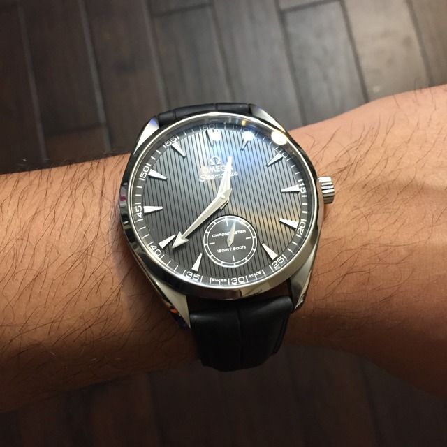 For sale is the rare and discontinued Omega Aqua Terra XXL Small seconds 231.13.49.10.06.001. Retail for this watch is $5,400 US if you can find it. Watch is Mint, no scratches or dings. This watch has the classy 2211 Manual wind movement which makes it perfect as addition to your collection. Case back is crystal so you can admire the movement. Red dot still in tact.