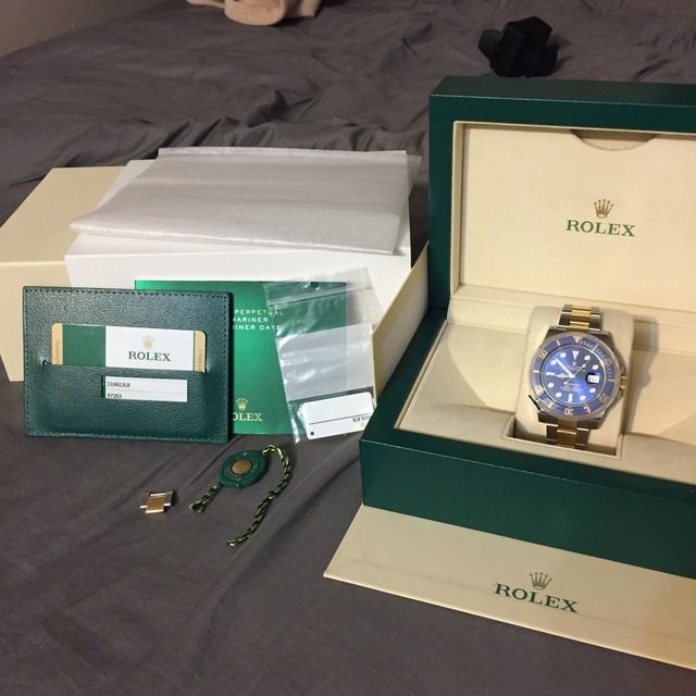 Complete set, complete links. Comes with inner and outer box, slip case, foam, bezel protector, hang tag, superlative tag, Manual, and warranty card. Purchased from knar, Oakville on March 13,2016. 3 years and 10 months left on warranty.