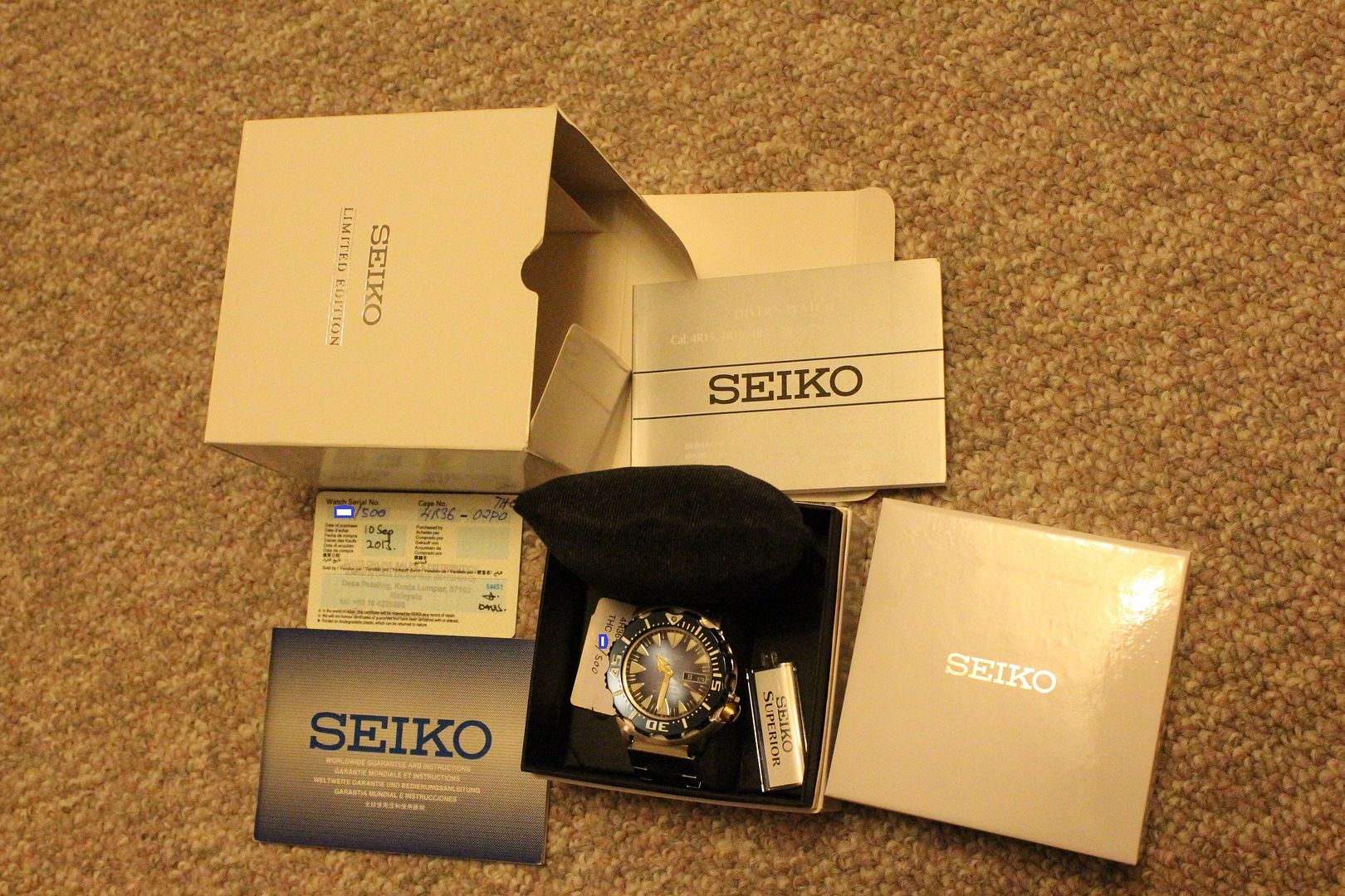 Up for sale is my 100th Anniversary Seiko Blue Monster Limited edition with 3 digits edition numbers XXX/500. It is a production run of 500 pieces and comes on Seiko steel bracelet as opposed to the rubber strap.