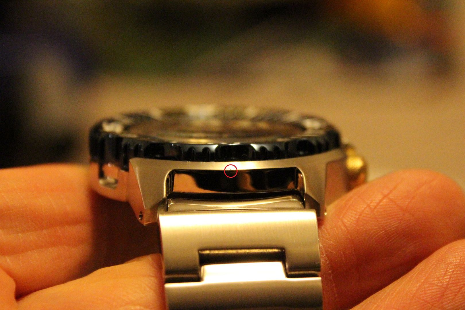 I have worn it a handful of times only and decided that I should let it go to a better home. The watch was never in or close to water. It is a gently worn watch and my rating is 97% on crystal, case and bezel. There is a slight ding (see picture below, pretty hard to capture) on the case edge at the 6 o'clock position. Rating of 95% on bracelet and clasp since it has some desk diving hairlines on the clasp and some minor lines on the bracelet.