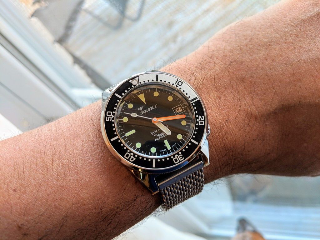 Gorgeous watch. Excellent condition. Comes with box and papers as well as original Squale mesh bracelet and rubber strap.