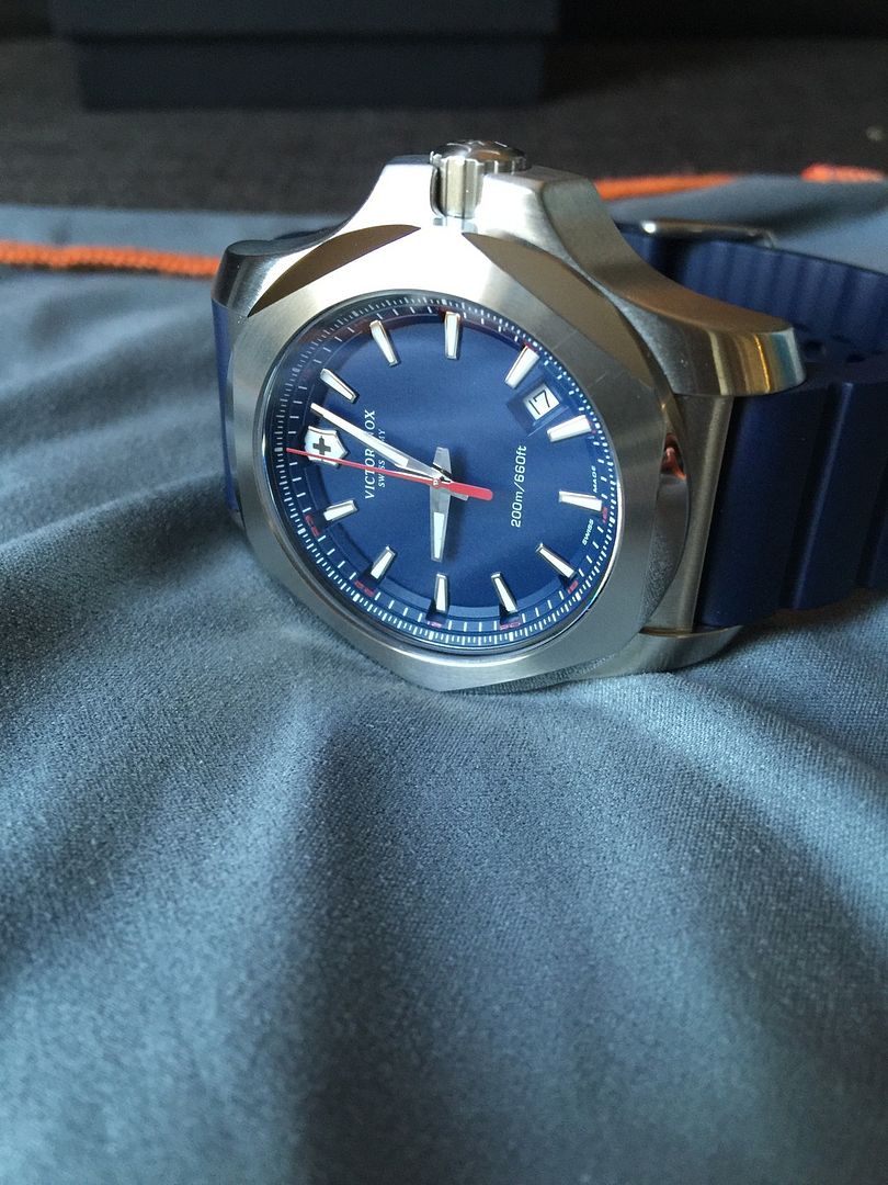 Up for sale is a Swiss Army INOX blue with blue rubber strap. I am the original owner and purchased it at an AD in August 2015 and it comes with everything as new.