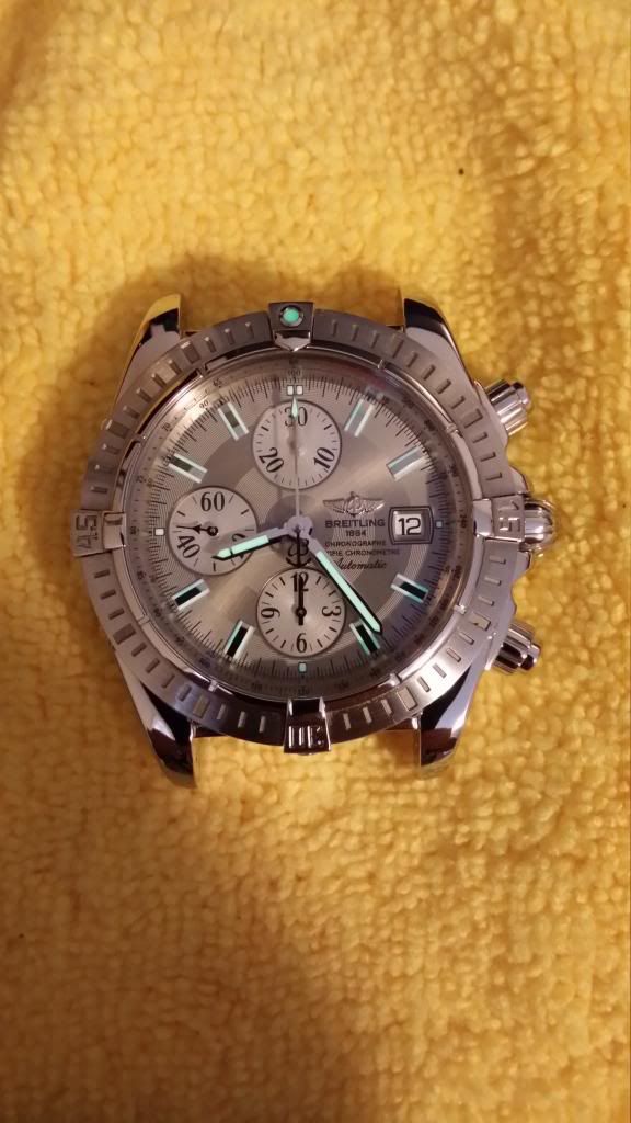 Not getting wrist time so here we go . $2650.00 shipped with mint pilot bracelet and near mint Breitling crocodile strap with Breitling tang.Very elegant and Very little wear.Below market and a great chance to get a watch to enjoy for many years with no worries . Fully serviced and better yet overhaul means new dial, hands and minty fresh like all my watches. 24 hour inspection from respected members. Pics now
