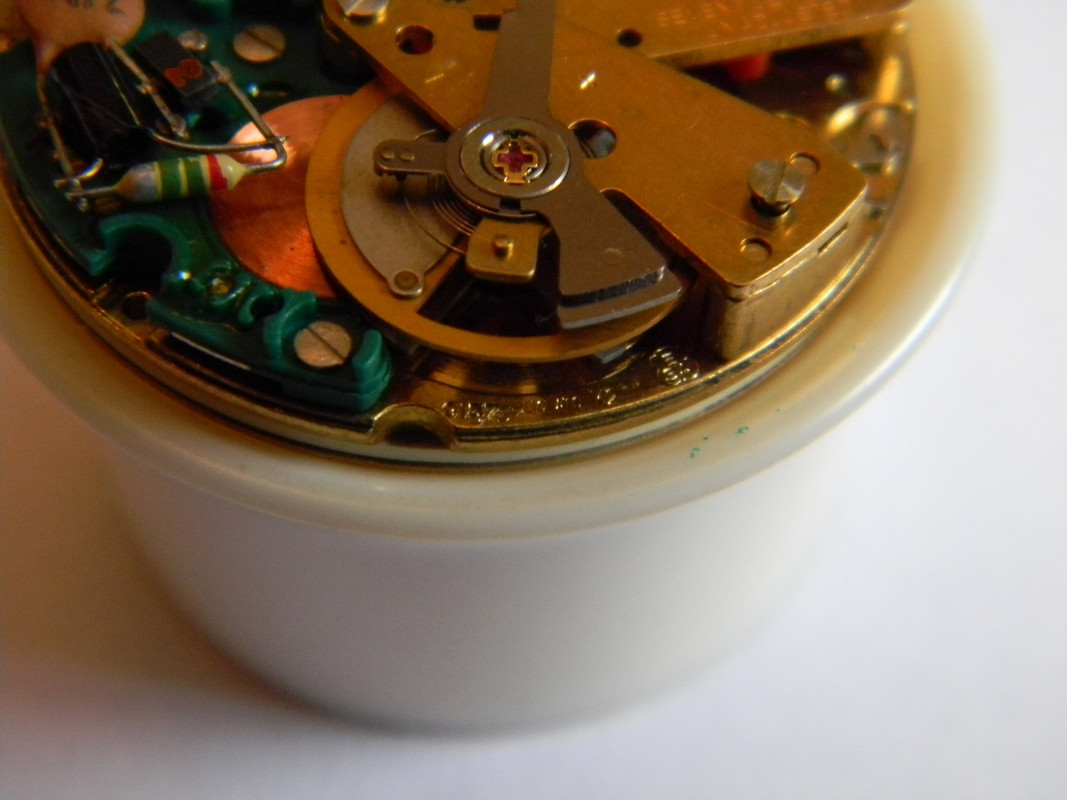 The date changes at midnight when the movement is running and changes when the hands are turned 24 hours