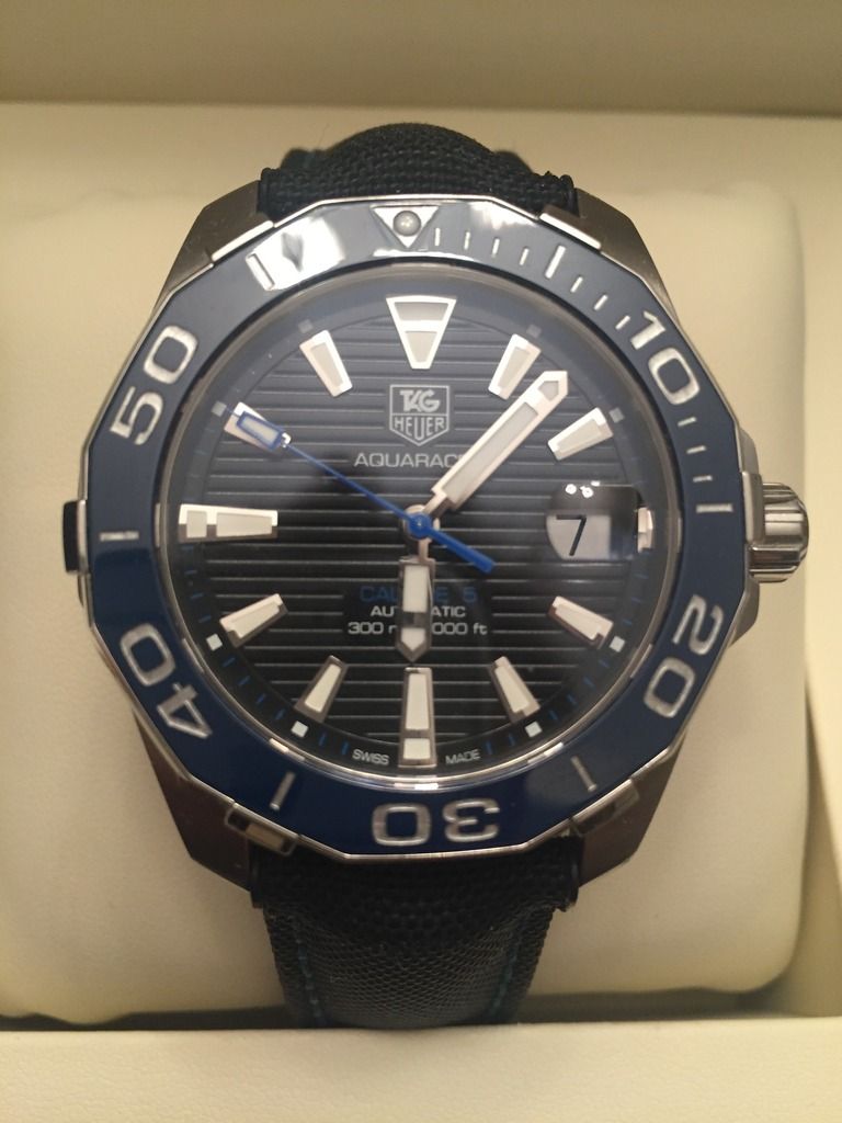 I am looking to sell my Tag Heuer Ceramic Aquaracer (WAY211B.FC6363) as I find myself not having the chance to wear it as often nowadays. It's an absolutely stunning watch, but knowing that it's being unused and that the warranty is running, I find quite wasteful. I purchased it from Bobby around Christmas of last year, in LNIB condition and 1 week old at the time. I have since worn it daily for approximately 9 months or so, and over the last few months it has essentially just been kept in the watch box at home.
