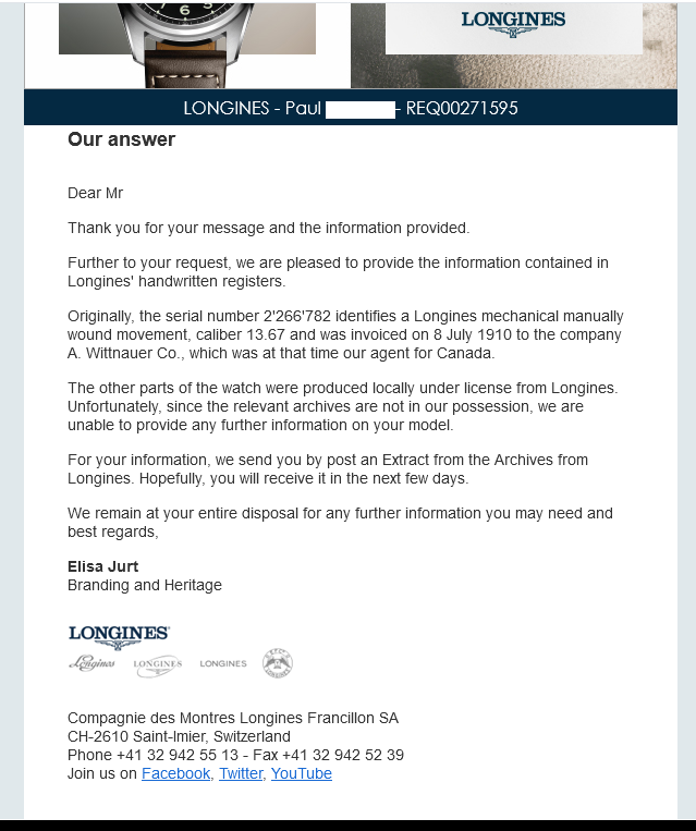 This watch was delivered to A. Wittnauer Co. Canada in 1910 and cased in a period correct American Watch Case Company Ltd. (Toronto) Cashier 14k gold filled case.