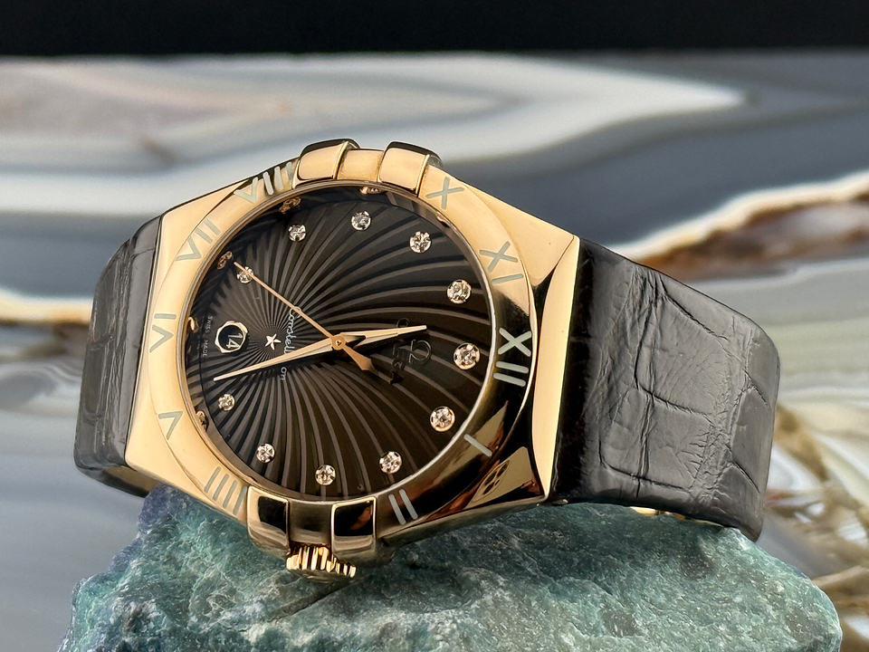 35mm Omega Constellation Quartz 18k Red Gold on strap with 11 VVS G colour Diamonds