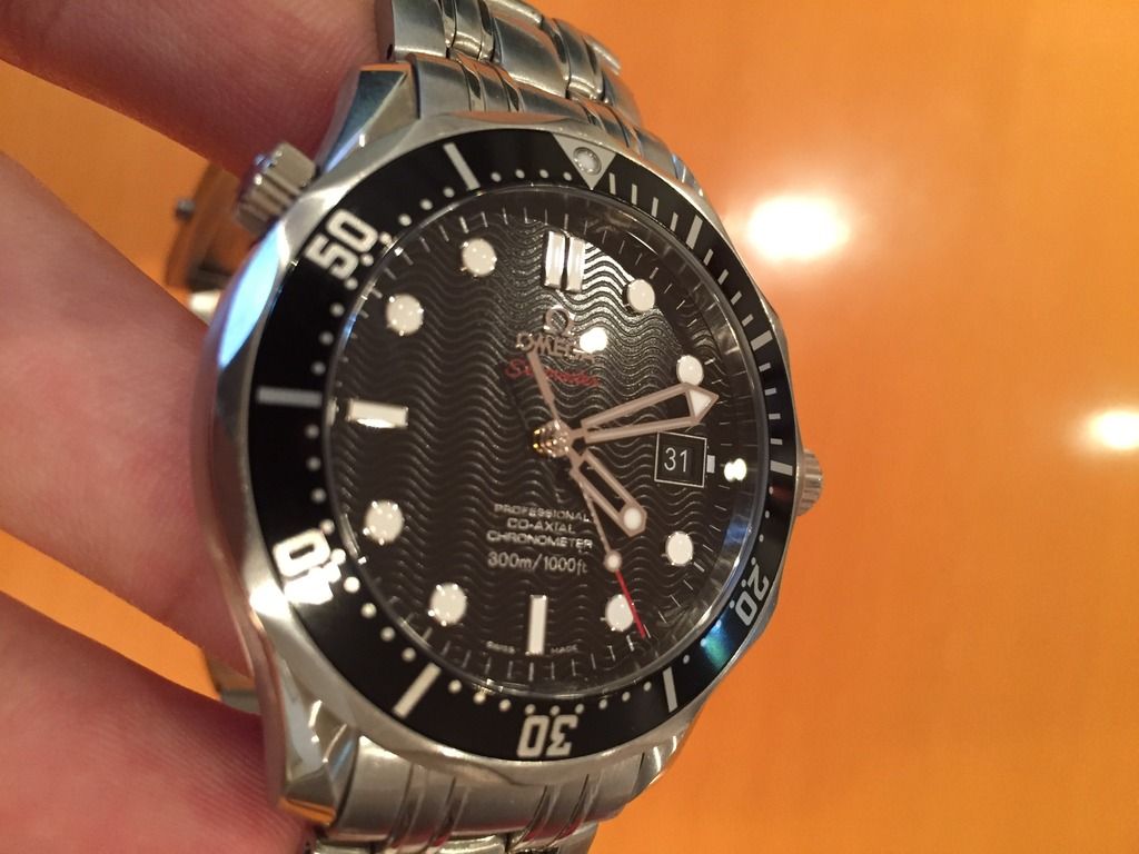 Just picked this up earlier today from the Swatch Group here in Toronto, after a complete overhaul. It's been brought back into excellent-mint condition with a transferrable 2-year warranty from Omega. Bracelet has also been buffed back to near-factor spec. Running perfectly and shouldn't require any maintenance for at least 4-5 years of ownership! Please note: the bracelet currently has 12 links and will likely need to be sized to your wrist, I asked Omega to put all of the links onto the bracelet so that they were all evenly polished.