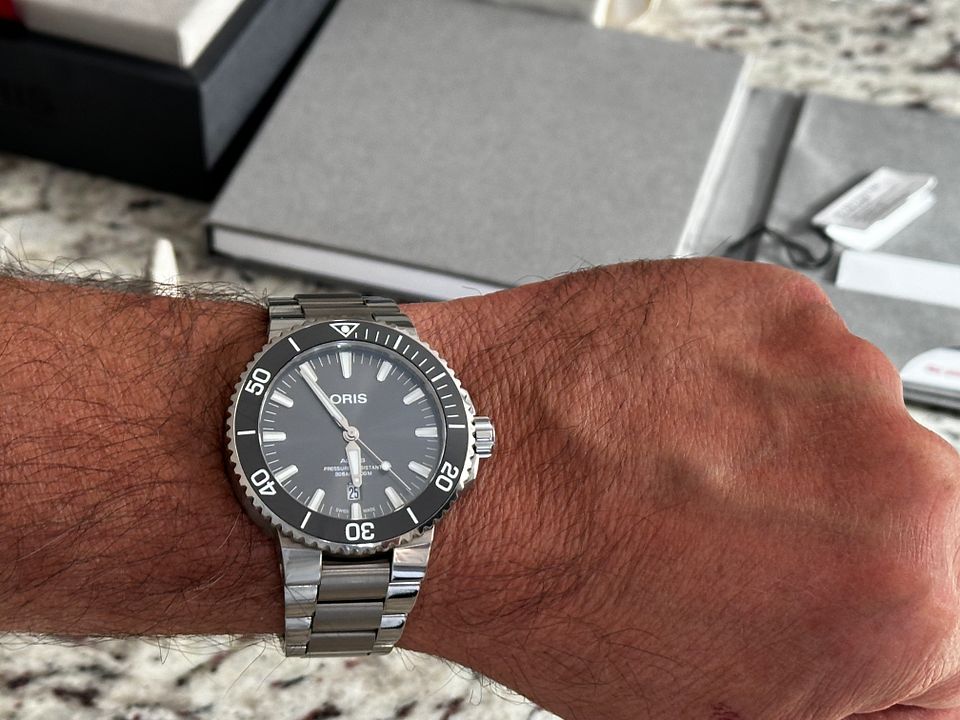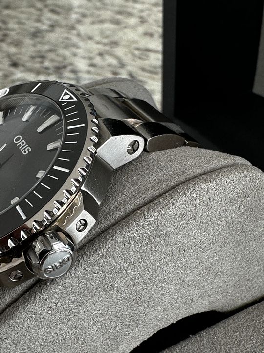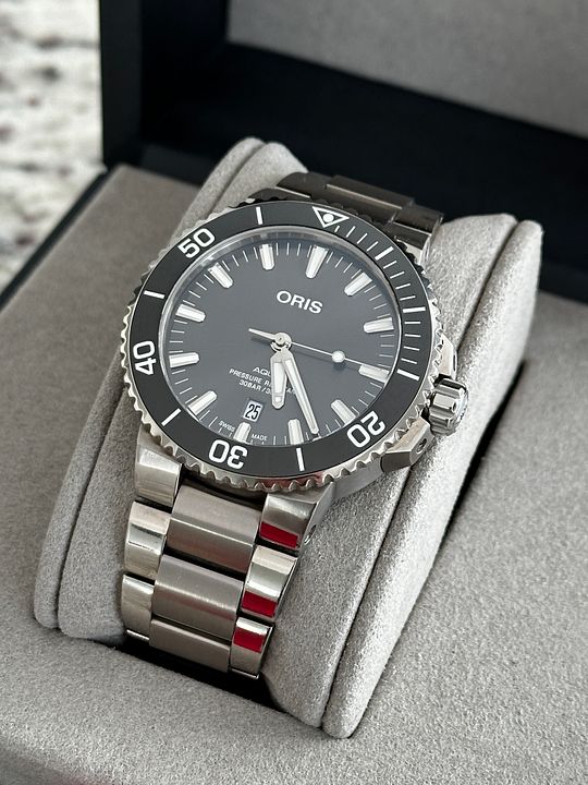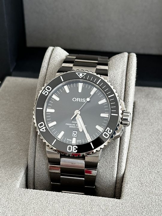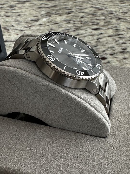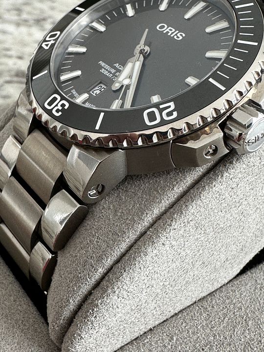 Oris Titanium Aquis, 43.50 mm, Multi-piece titanium case, ceramic minutes scale top ring, Titanium