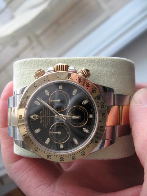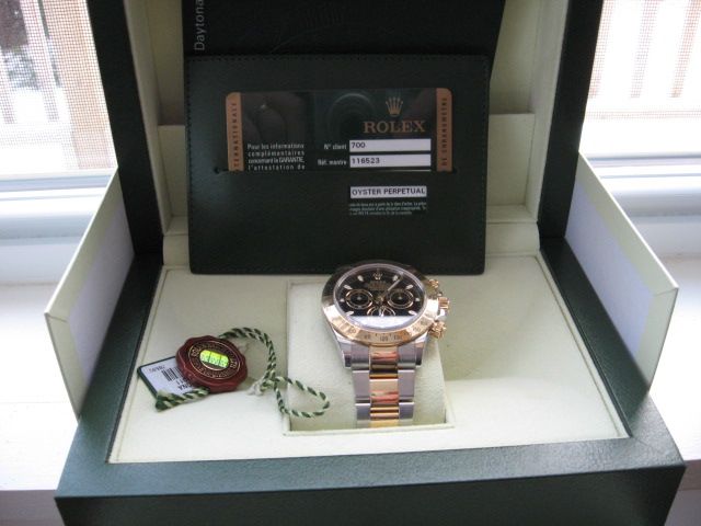 I have for sale a g serial 13 month old two tone daytona,has little swirls from being worn occasionally,no dings or dents. Current list is $17000. Warranty card is dated and named from a canadian AD. Rolex trades welcome. Full photo package available for those that are interested.