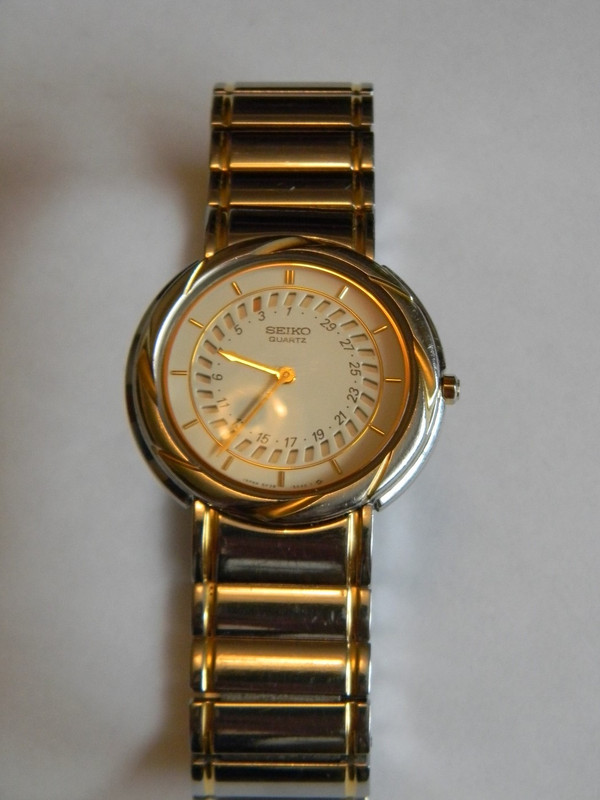 I'll include this Seiko circa May 1996 quartz watch as a gimme for whoever buys this watch. The date is shown in the dial cutouts as a red marker. Brand new this watch cost $450 CAD. Your price: $0.