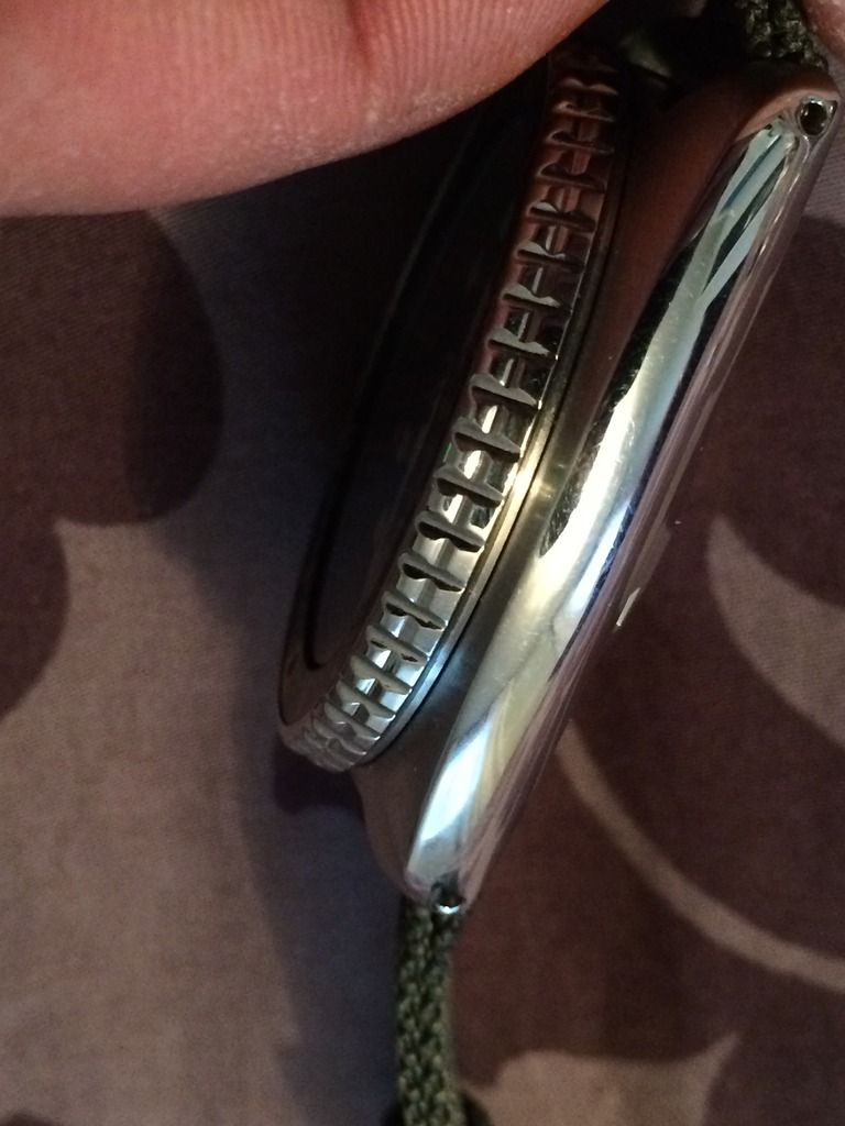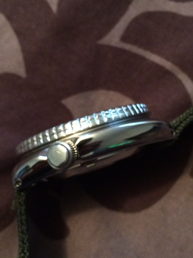 some marks on bracelet and hairlines on case. glass and brushed areas look great and chapter ring lined up! Have positive feedback on here, and lots on canadiangunnutz under rod1.