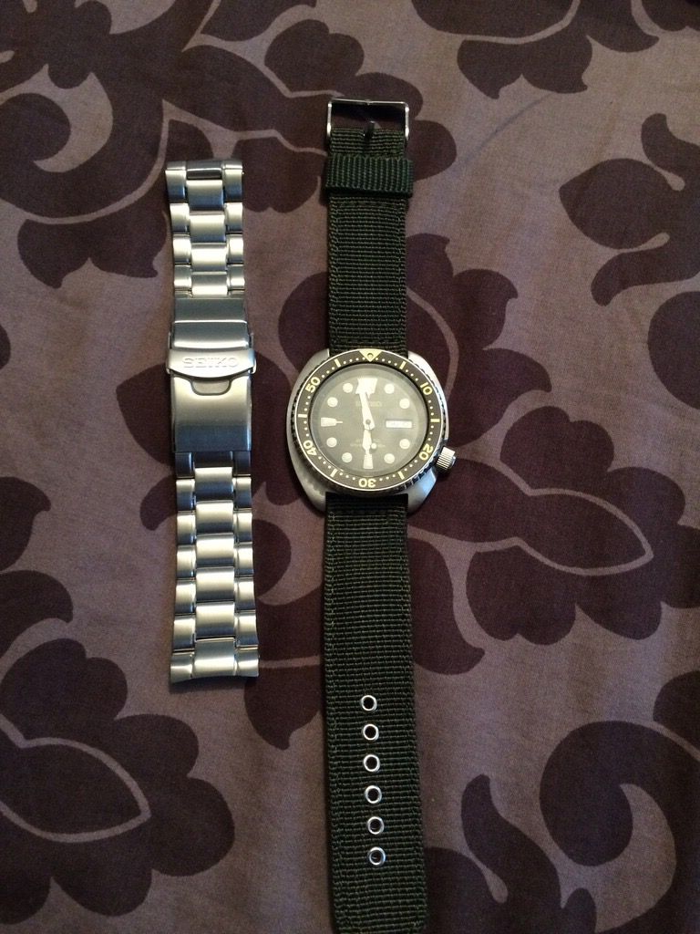 Comes with box, the links removed, and canvas strap along with steel bracelet.