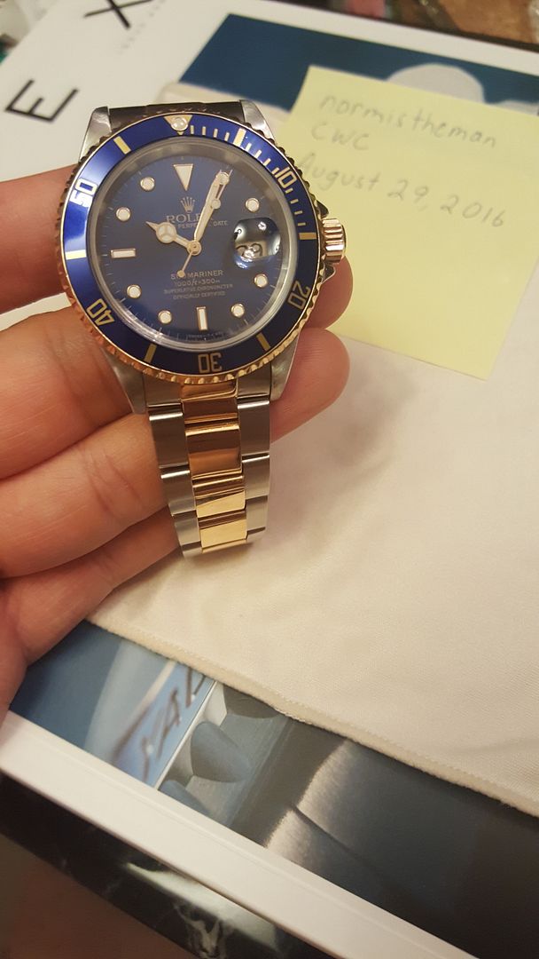 Up for your consideration is my Rolex Submariner 18K/SS Bluesy 16613, W serial number with the balance of the 2 year Rolex service warranty dated April 7, 2016, and expires on April 7, 2018.