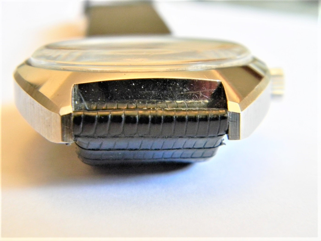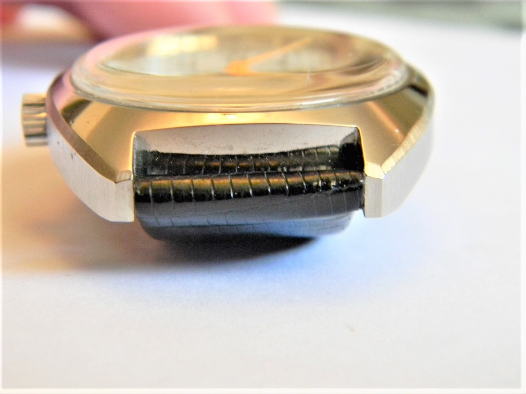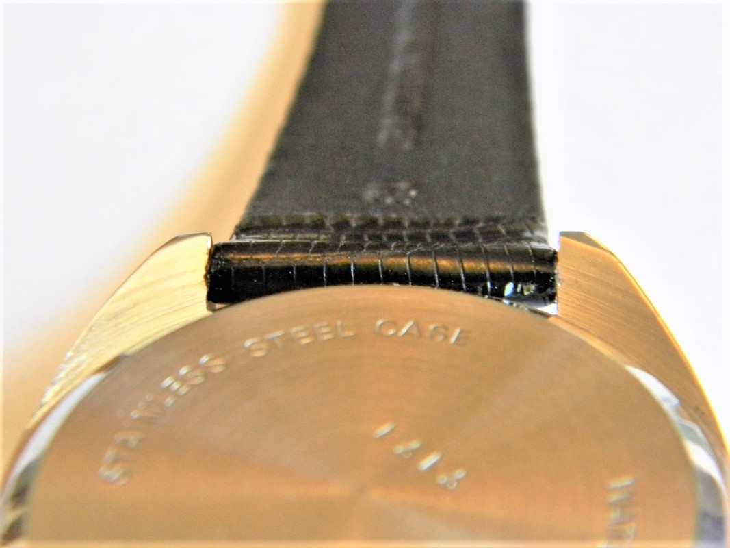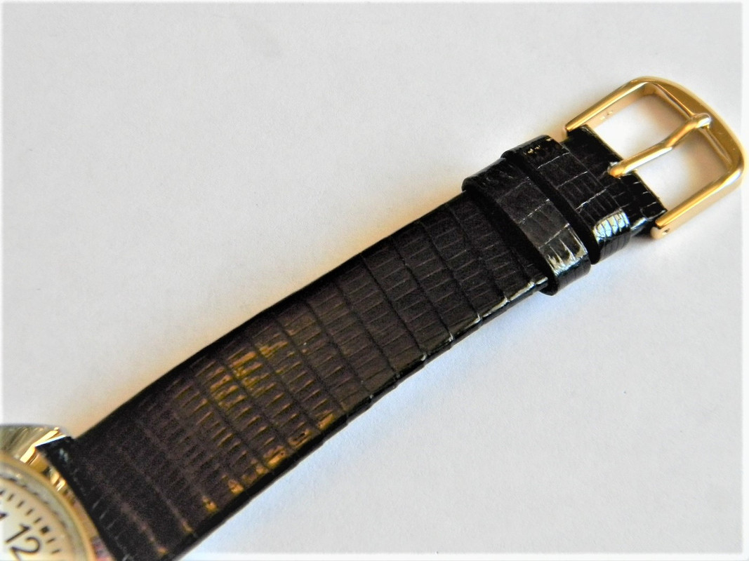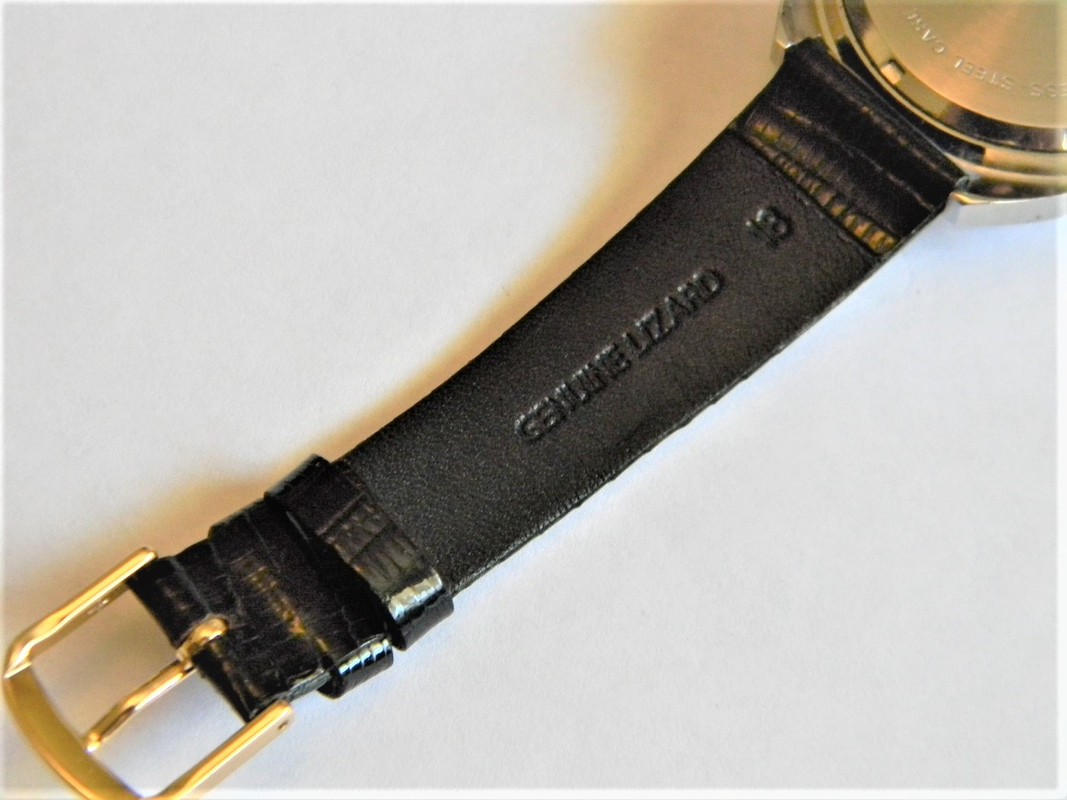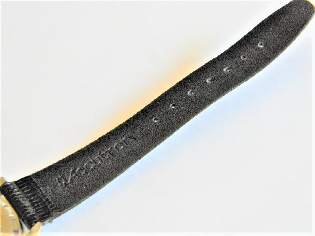 Comes with Accutron branded black lizard strap with gold plated buckle