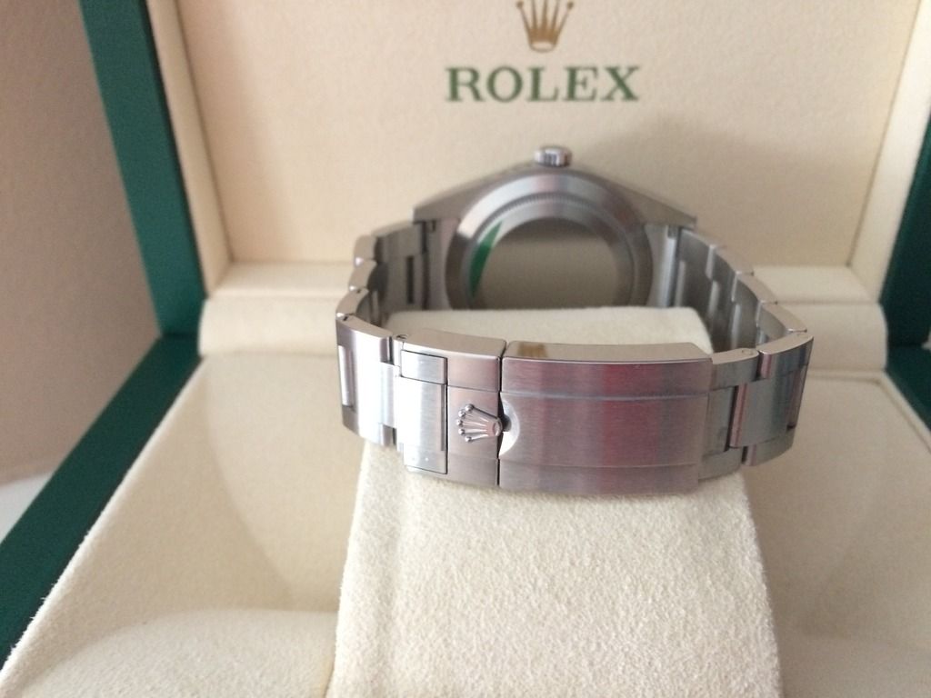 Selling on behalf of my twin brother. This is the prior version with the white gold 3, 6, 9 indices. I would rate it 98% as it has been worn, but I could not find any dings, flea bites or any noticeable markings.