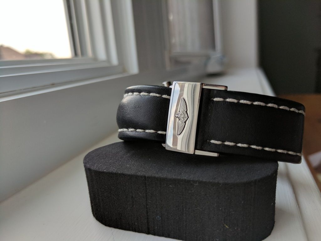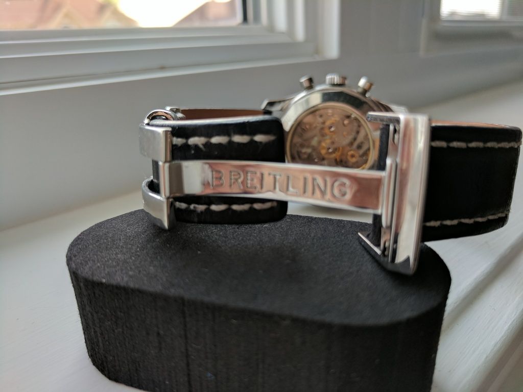 Comes on original Breitling Black calf (about 90%) on original deployant and I'll throw in the original Breitling black crocodile which still has some life left in it but is well used.*
