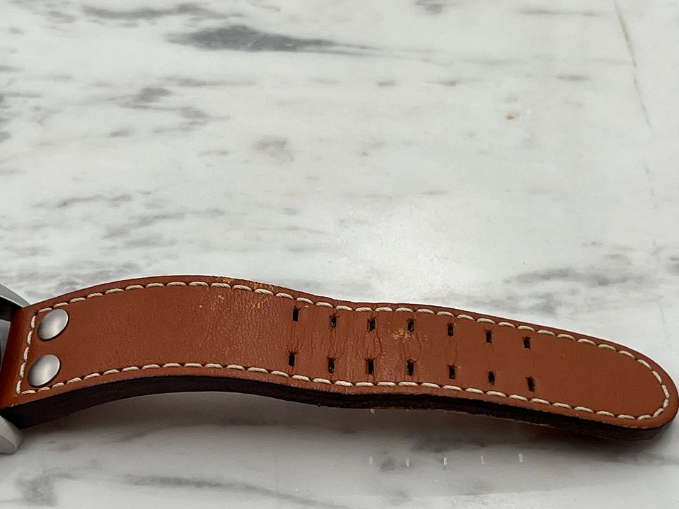 Watch is in excellent condition with no marks on case or crystal but strap shows some wear.