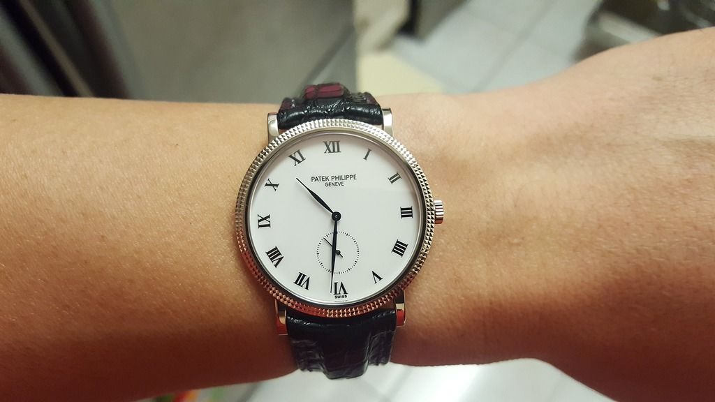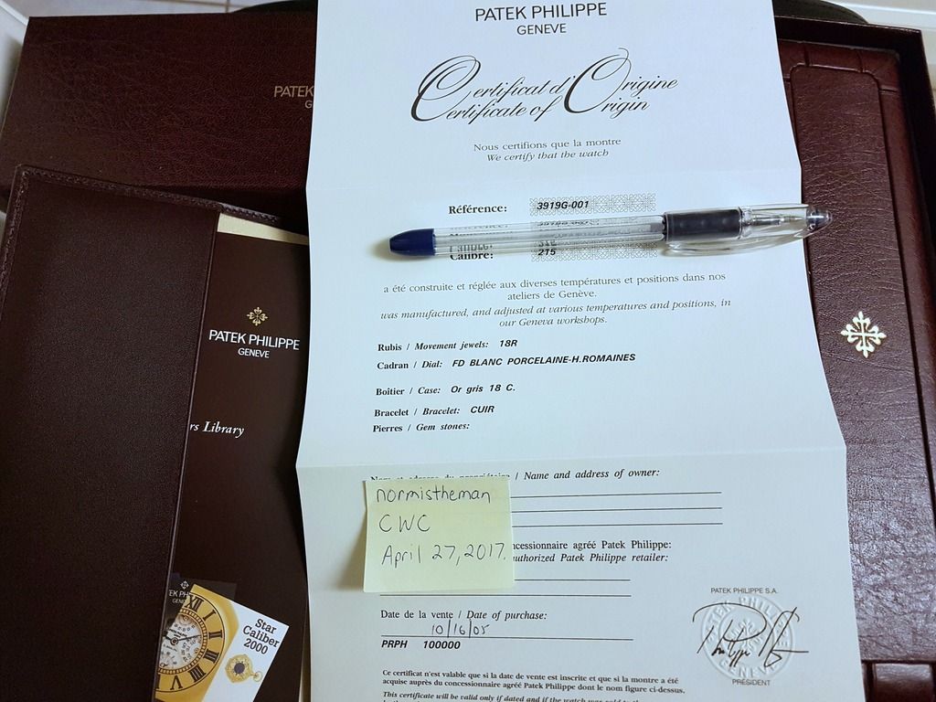 Also included is the original Patek Philippe black alligator strap in very good condition with the original white gold buckle. Please note that this strap would probably be too small for a wrist size of more than 7 inches. My wrist is just over 6.75 inches, and I am using the second last hole on the strap.