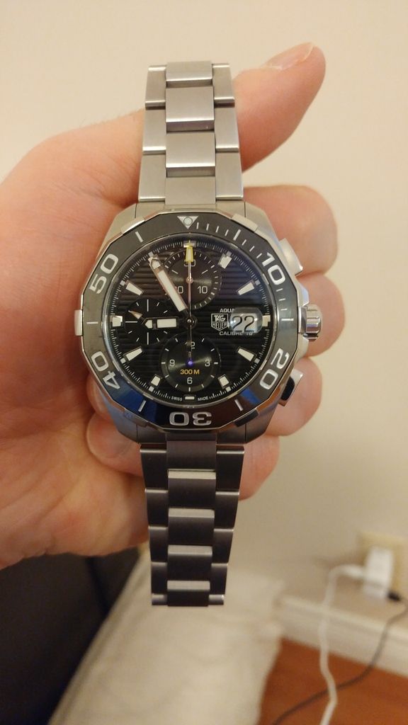 FSOT gentlly used Huer Aquaracer CAY211A.BA0927 Ceramic Cal 16 Chrono . Boxes and papers. Stamped but un dated. Few light desk dive marks. Otherwise unmarked.Runs mint +3-4 sec a day. Only a few months old. Screams quallity! Wears nice at 43mm. Asking $2500.00 can shipped cash or trade. This is the current model and retails for 3650usd aprox 4500cad.