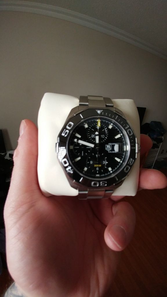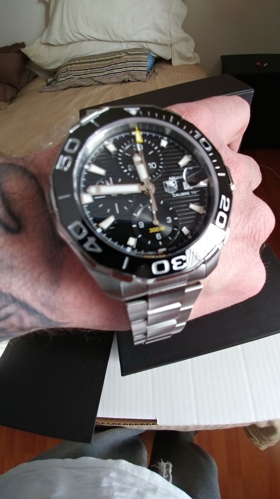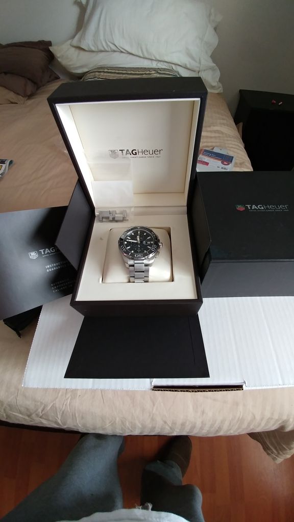 FSOT gentlly used Huer Aquaracer CAY211A.BA0927 Ceramic Cal 16 Chrono . Boxes and papers. Stamped but un dated. Few light desk dive marks. Otherwise unmarked.Runs mint +3-4 sec a day. Only a few months old. Screams quallity! Wears nice at 43mm. Asking $2500.00 can shipped cash or trade. This is the current model and retails for 3650usd aprox 4500cad.