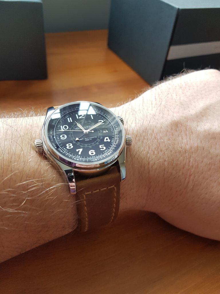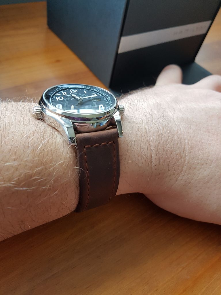 Speaking of straps I have 2 Hirsch Terra straps that I bought for this watch. These are the ones Hirsch make for Panerai with "assoulamante" leather. They are very high quality and suit the vintage vibe of the Hamilton very well.