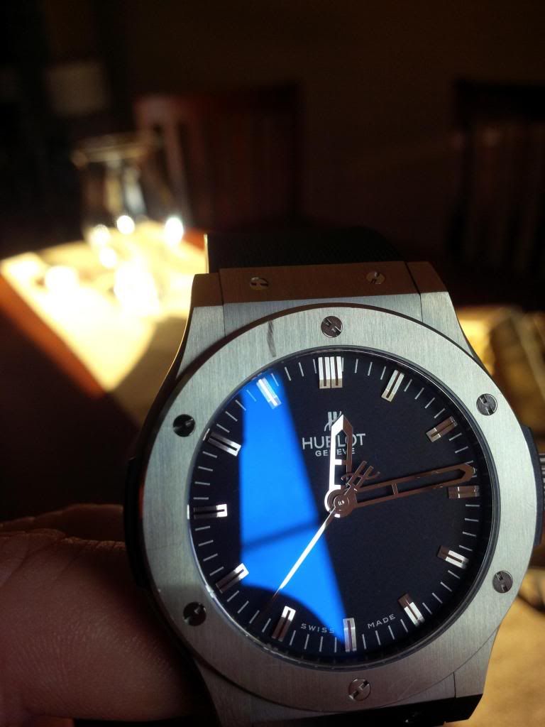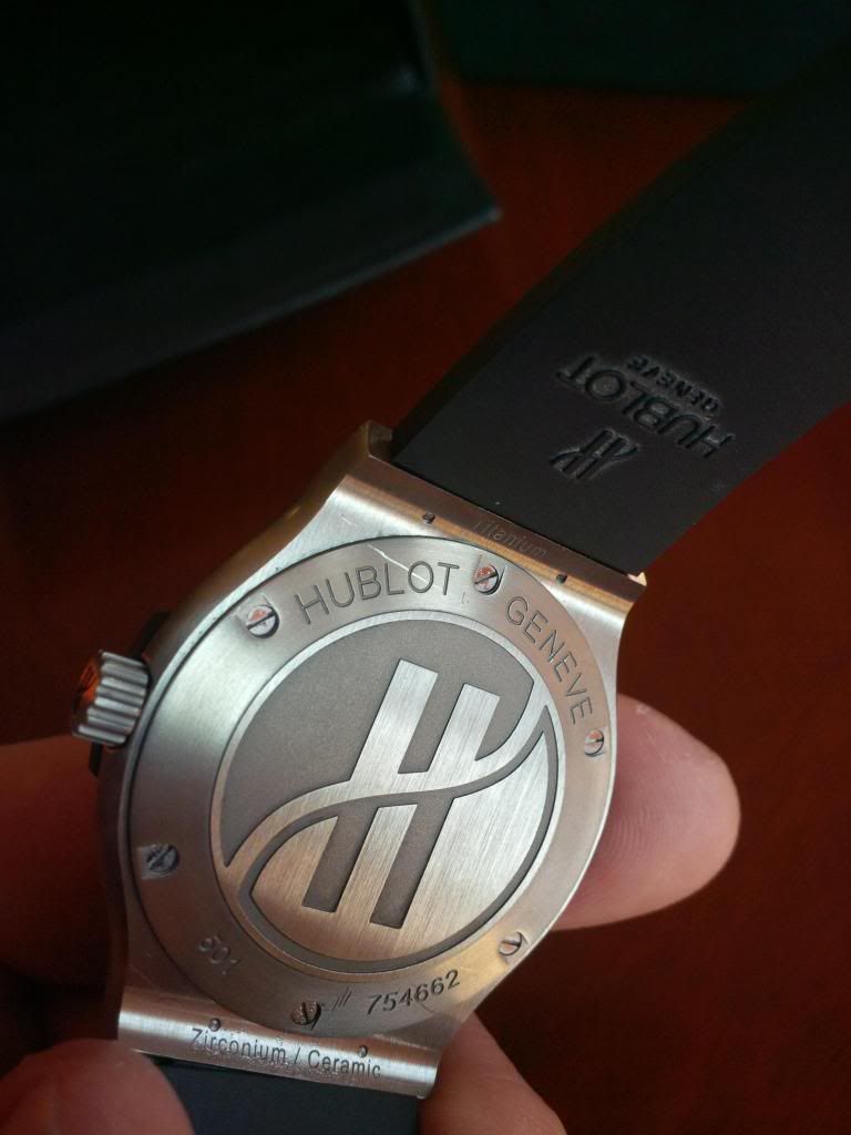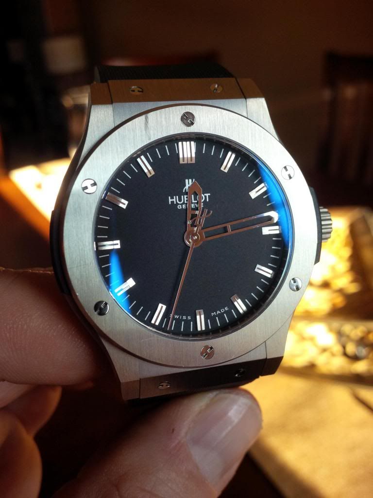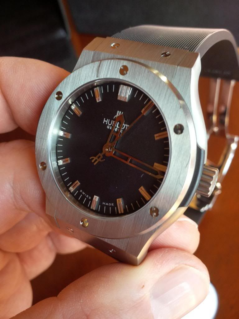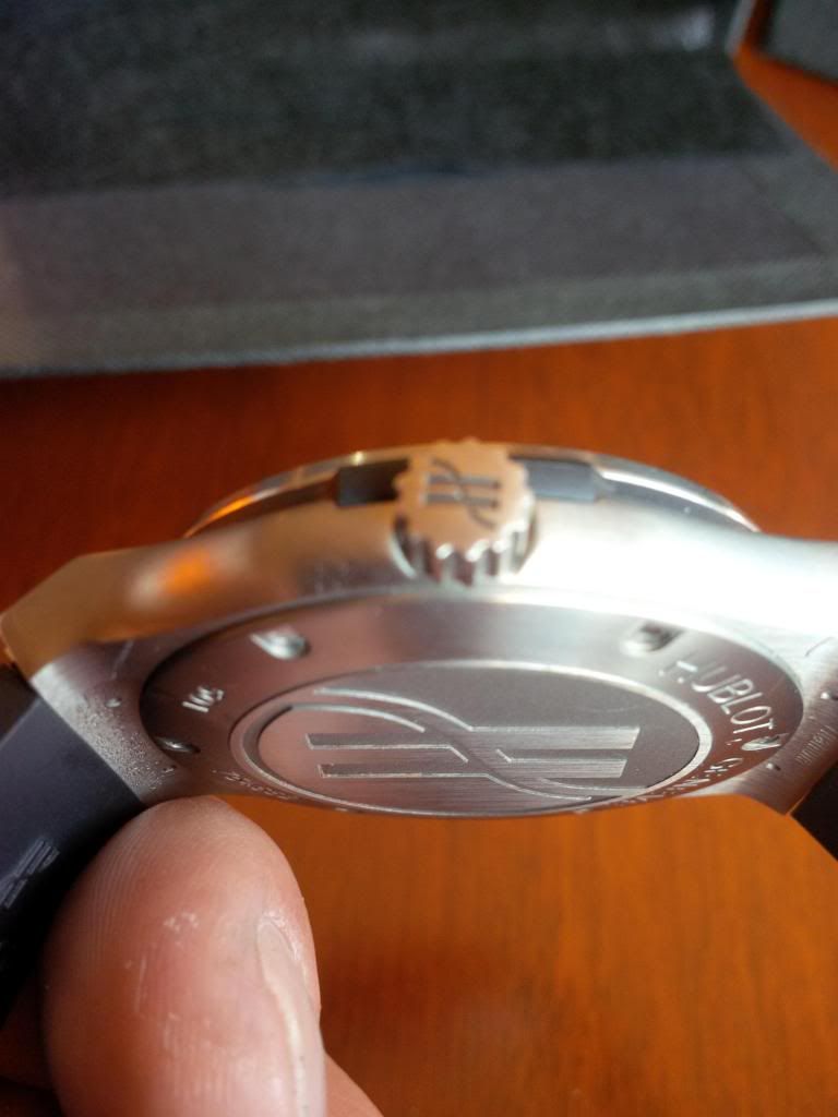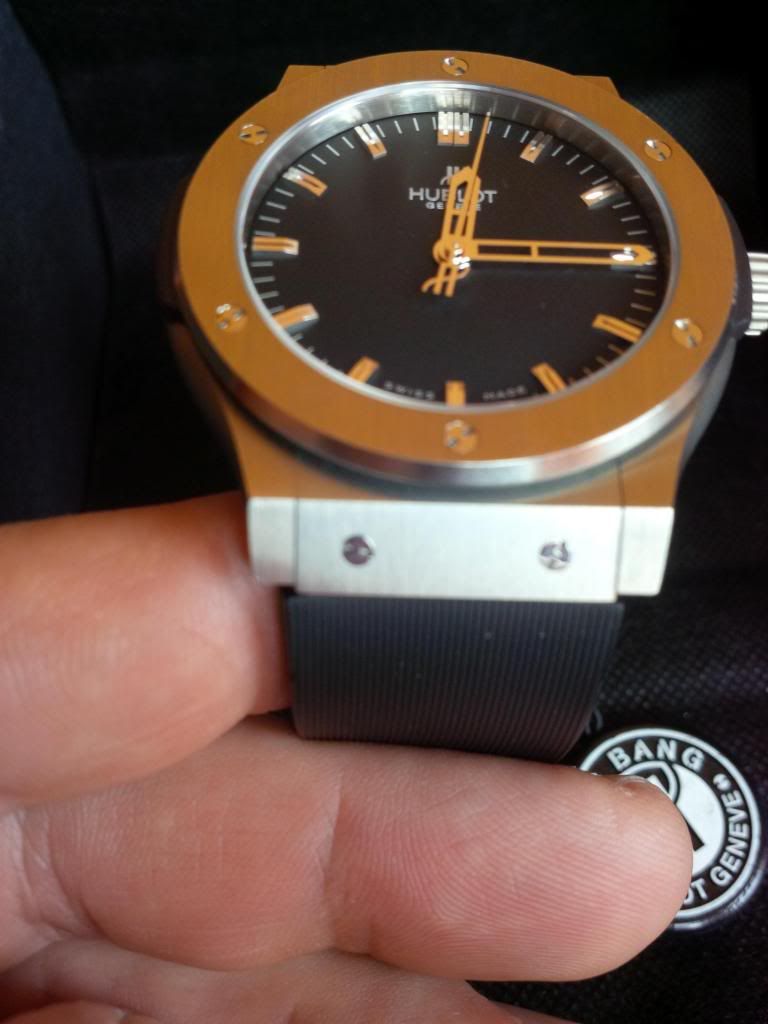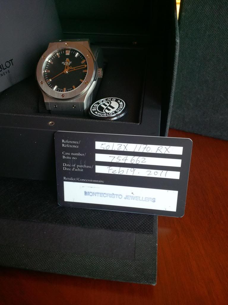 Hublot Fussion from canadian AD bought in Feb.2011 .Comes complete with box , papers , stamped and dated warranty card . it is is very good condition it has small surface marks on the bezel and one on the back . i did my best trying to show them on the pictures .