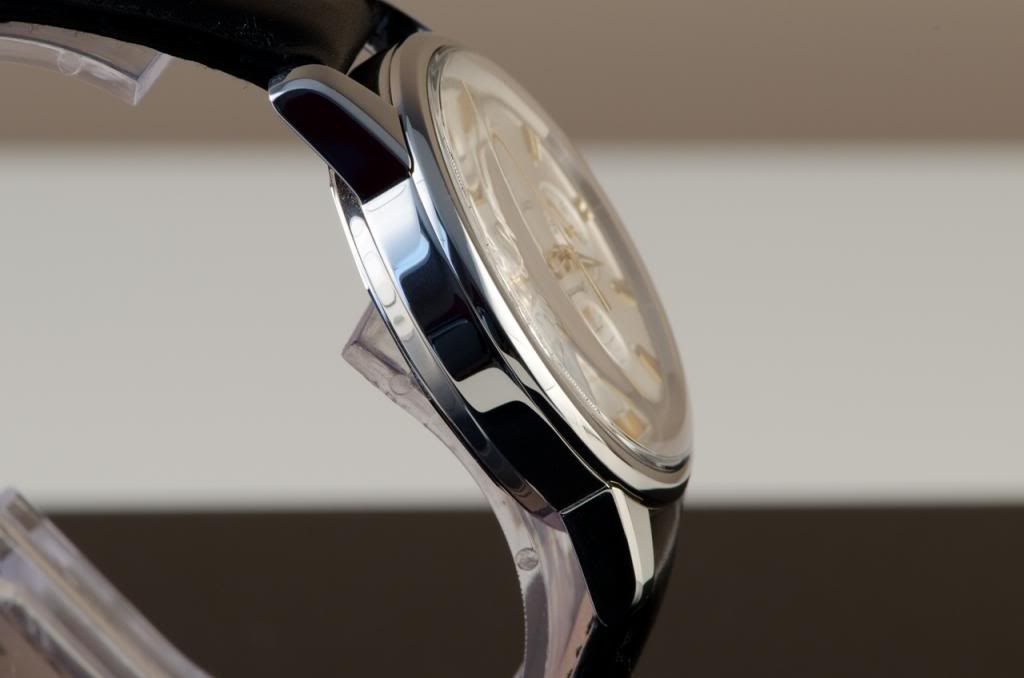 I would rate watch in near mint 95% condition. The only mark I can find on it is on the lower