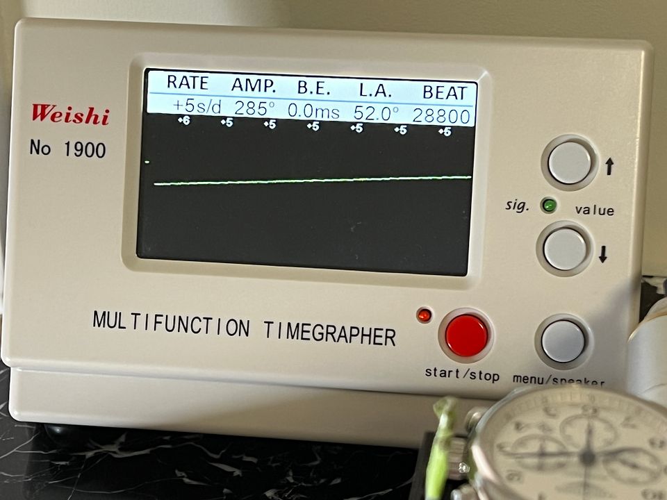 Keeping excellent time with all hand resetting correctly.