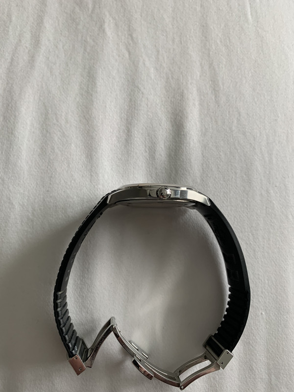 There is a scratch/ding on the non crown side( where side of watch meets caseback) see photo. You'll know it's there but no one else will. If you want it can be polished out during next service.