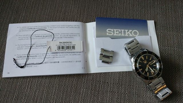 Included with the watch is the hang tag, two extra links, manual and warranty card which is dated September 2016, meaning this watch is still under warranty until September 2017. Currently sized for a 7.5 inch wrist