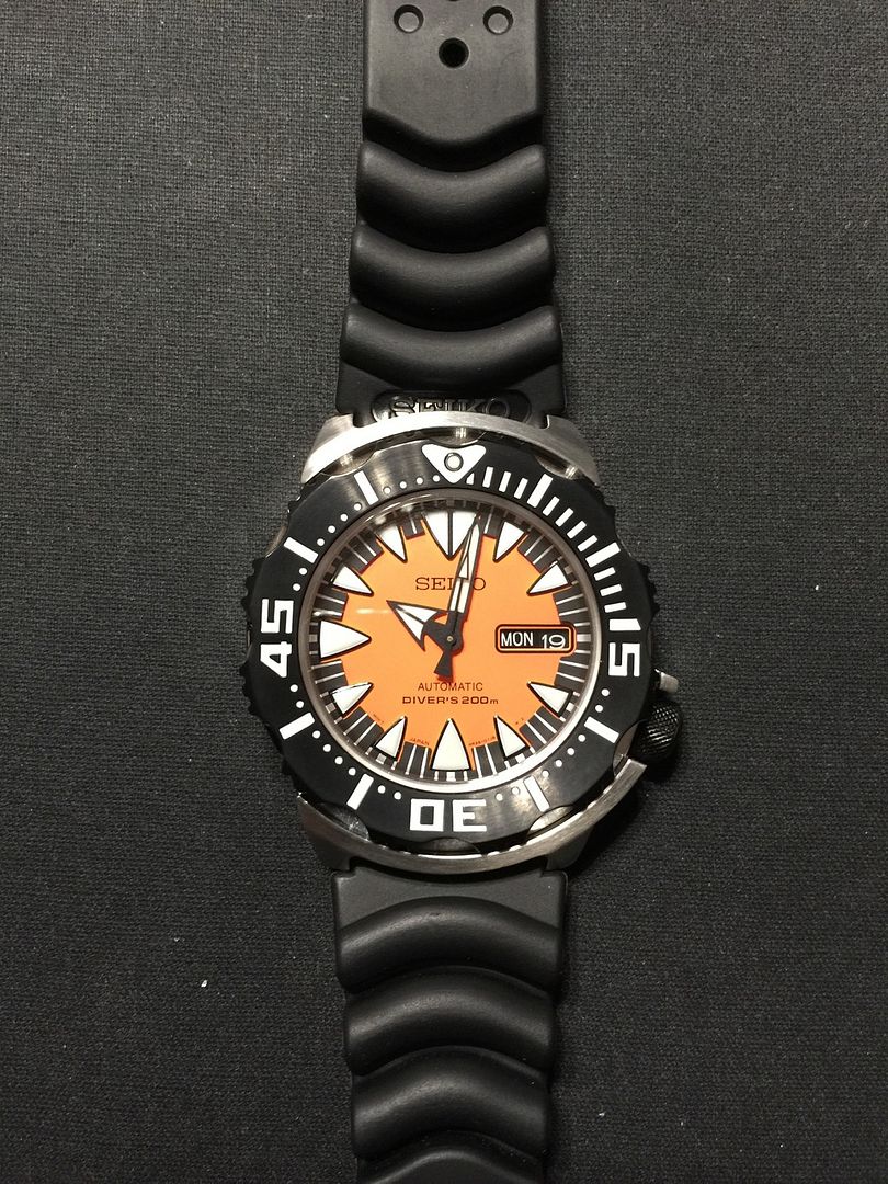Good evening all, I have up for sale a like new condition Seiko Monster. Purchased late last year and worn once around the house, the blue sticker on the back is still intact.