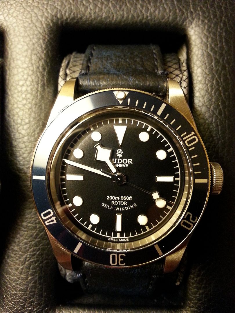 Up for sale is a Black Bay Blue on leather that comes with everything as new. I am the original owner and purchased it in November 2014. It has some typical wear on the case and it has some marks on the underside of the lugs due to strap changes. The OEM fabric strap has been worn as well but both straps are in good condition with plenty of life left. The crystal is mark free so please excuse the dust in the pics. The movement keeps excellent time with plenty of power reserve.