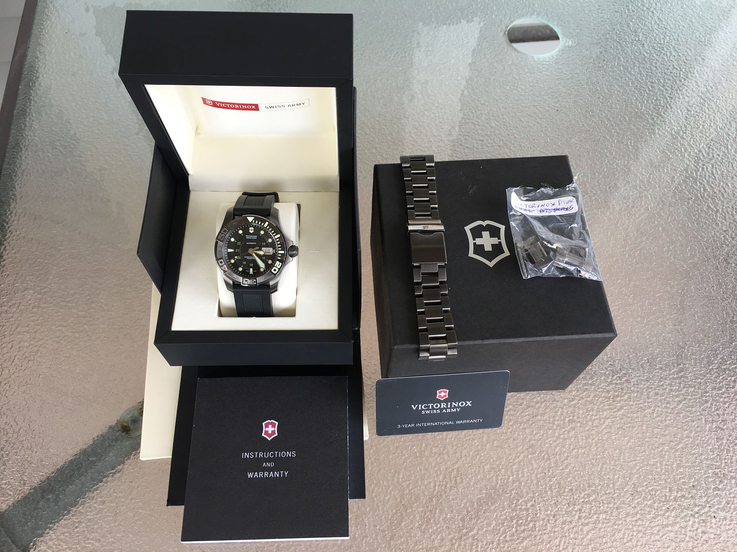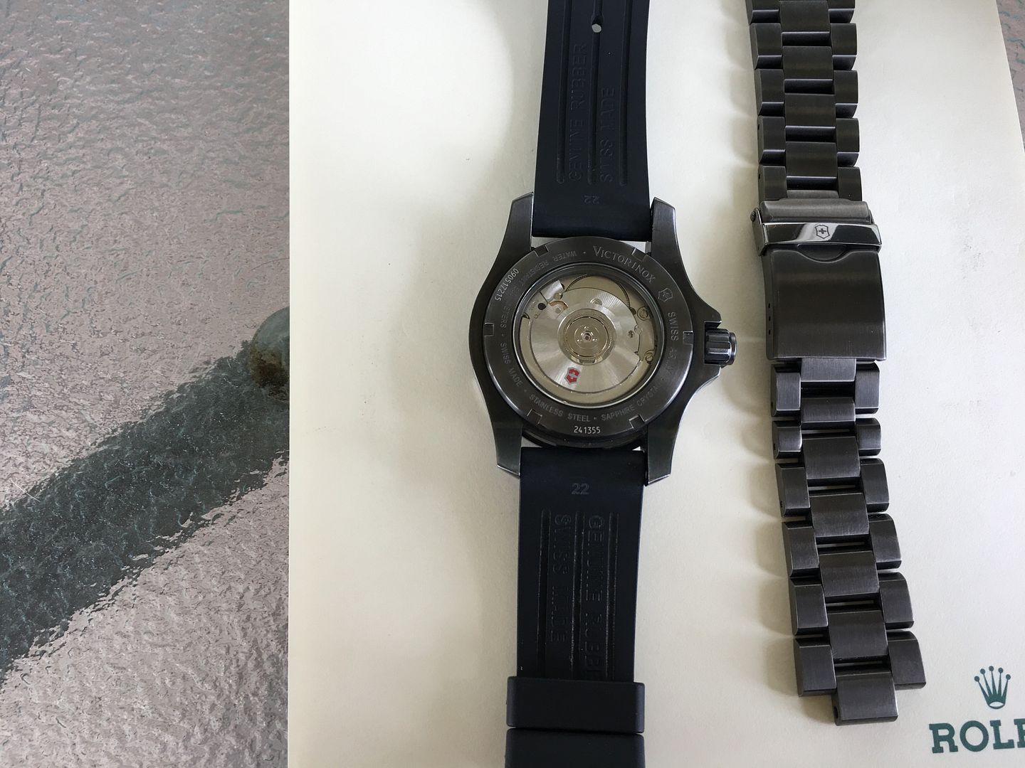Included in the sale is a genuine Swiss Army Stainless Steel Bracelet with all links, so you can choose between the rubber, which the watch was originally sold with, or the SS bracelet.