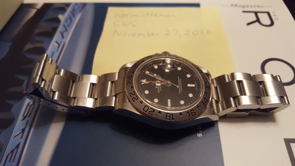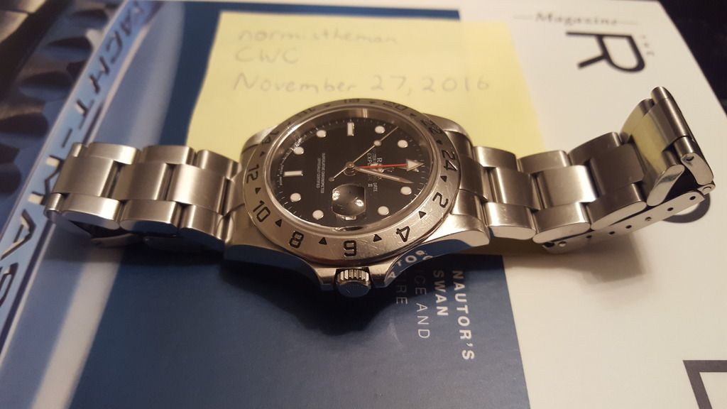 Up for your consideration is my Rolex Explorer II 40mm reference 16570 black dial, "Z" random serial number, purchased from a Canadian AD on October 13, 2007. Probably one of the lowest prices you'll see for a modern day Rolex sports watch that comes complete with inner and outer boxes, warranty papers, all the links, pamphlets, hangtag, etc. The bracelet is super tight.