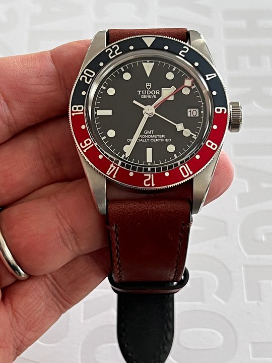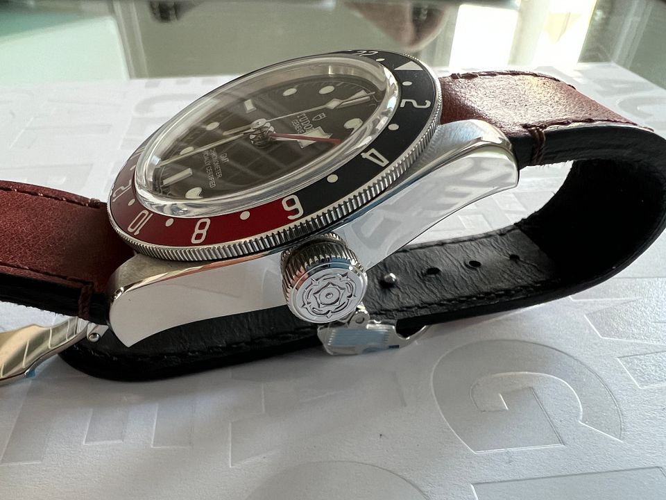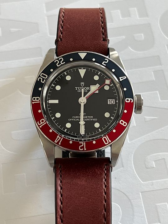 Tudor Black Bay GMT Pepsi from 2021 on strap and deployant.