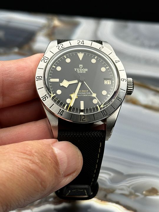 Mint condition Tudor Black Bay Pro M79479 on strap.