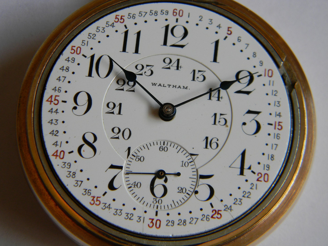 Movement winds sets and runs plus (+) 1 second over 24 hours dial up