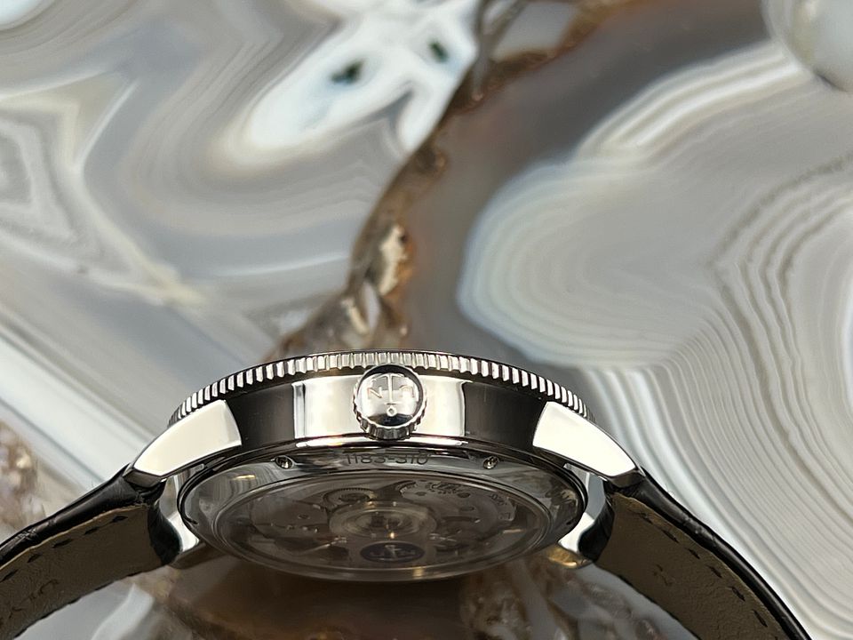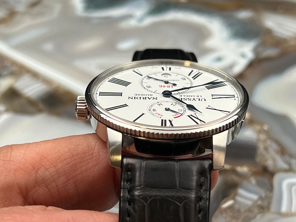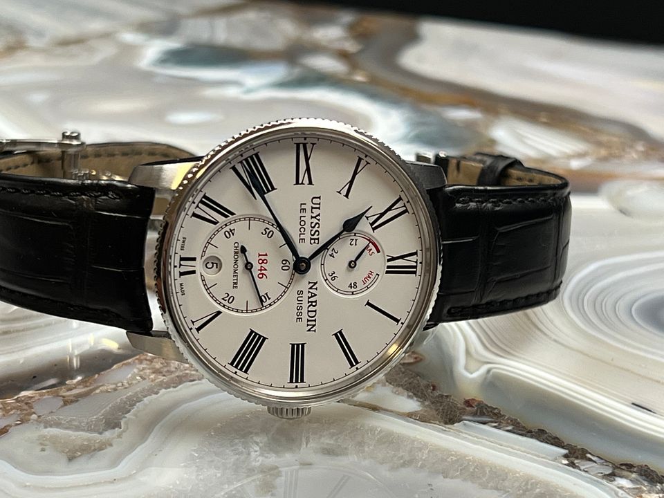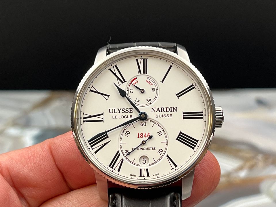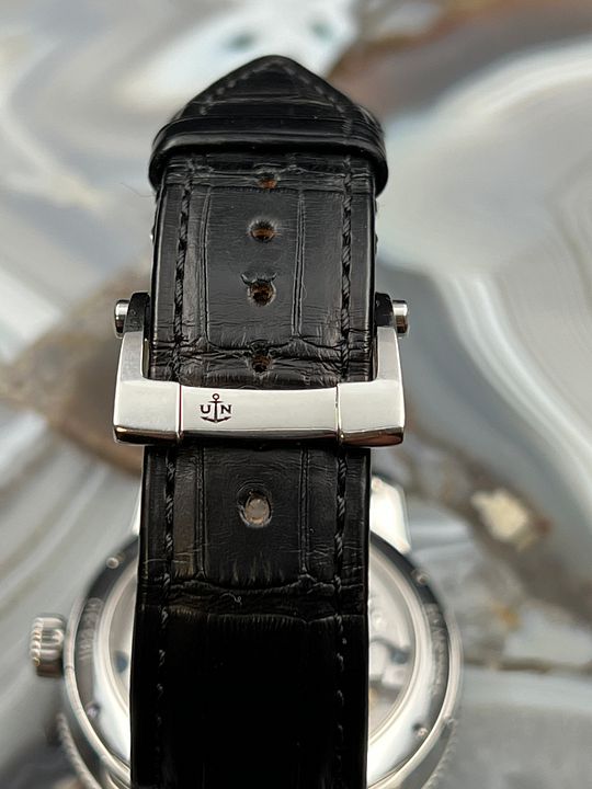 For sale is a UN Marine Torpilleur 42 mm with an automatic UN-118 that has a 60 hours of power reserve, an in-house silicon hairspring and silicon escapement coated with synthetic diamond.