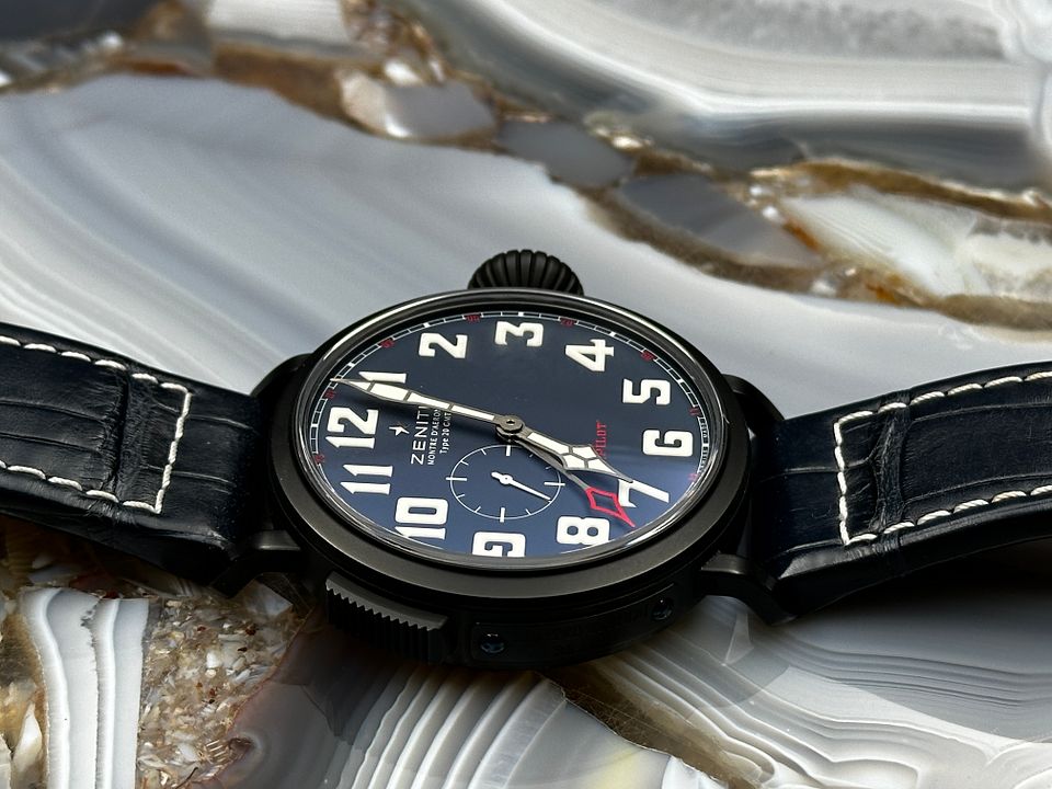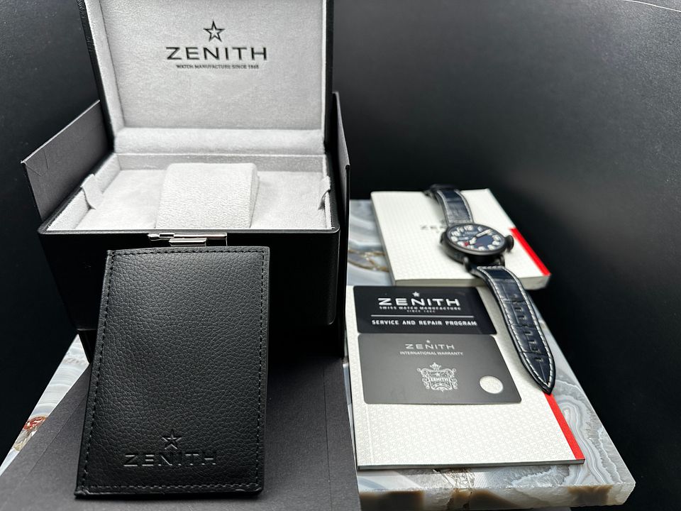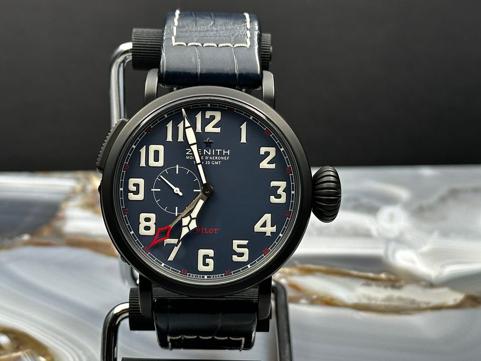 Zenith Pilot 48 GMT Limited Edition reference 96.2436.693/51.C779 from 2018 complete with boxes booklets and warranty card stamped and dated.